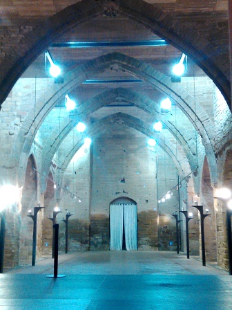 Ya ha oscurecido cuando llegamos a lo castell, apenas sin poder hablar de la risa y el esfuerzo. Ana abre una puerta lateral y entramos en plena oscuridad. El momento en que se van calentando las luces y van iluminando el espacio es solemne. Me lleva al lugar donde Héctor Urién contó sus Mil y una noches, bajo las ruinas de los arcos de la iglesia que me recuerdan a un esqueleto de ballena, y me imagino a los personajes de los cuentos sobrevolando el espacio. Las vistas de la ciudad son espectaculares.