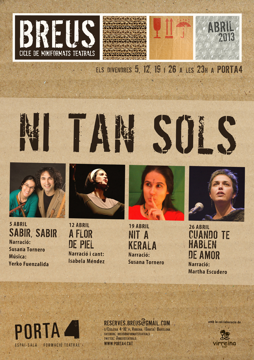 25/03/2013 - blogEl divendres 5 d’abril encetem un cicle de narració per a adults a la sala PORTA 4, dins del cicle de miniformats teatrals BREUS, amb la sessió «Sabir, sabir».
