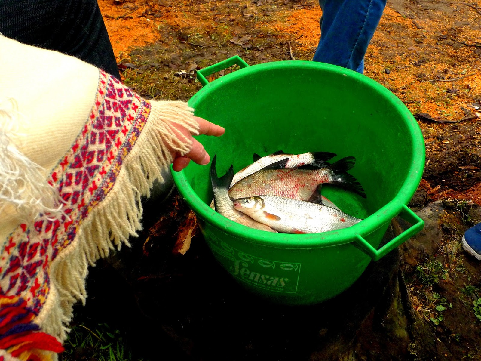 In the centre of the park they have installed a big stage where people will enjoy music, dance… and storytelling. The fair is full of people in spite of the cold, and I feel really grateful of having the splendid shawl Mara borrowed me. And still no rain! When my turn comes, I tell the Stone Soup story, but instead of meat I add fresh fish from Venta River, as in the local dish. It is funny to see people repeating hypnotically the sounds clong-shhh-chikchikchik-chaschas-plof… After the stories people are encouraged to come with us to the river bank, behind the Kūrava Cultural Center. It is a good place, far away from the fair’s hubbub and sheltered from the wind, two important details from my point of view. I am glad to see how organizers took into account these details that sometimes big cultural managers don’t even consider. And then… Yes! Here comes the sun and the temperature is quite agreeable.