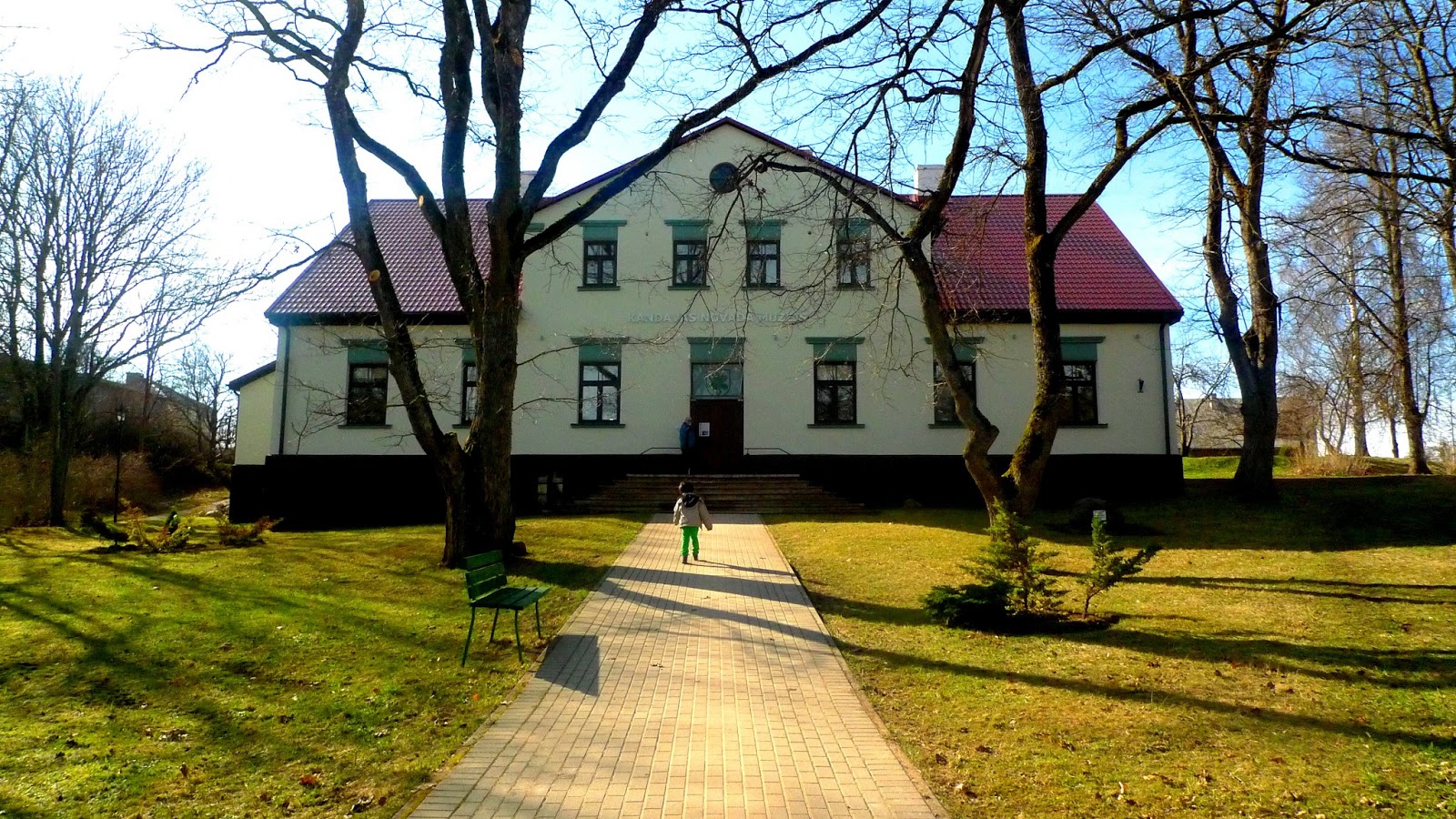 A la hora de la despedida, Ina nos abraza, nos pone un delantal a Jaak y a mí y nos dice: «Ya sois parte de la familia». Abrazos, despedidas… subimos en el coche y ponemos rumbo a Kandava. Bosques, prados, una casita aquí y allá. El paisaje es muy llano, como mi Empordà natal, pero allí no tenemos estos bosques. La primavera se está haciendo de rogar, pero ya empieza a pintarse todo de verde. Vamos bien de tiempo y Guntis hace un alto para mostrarnos las