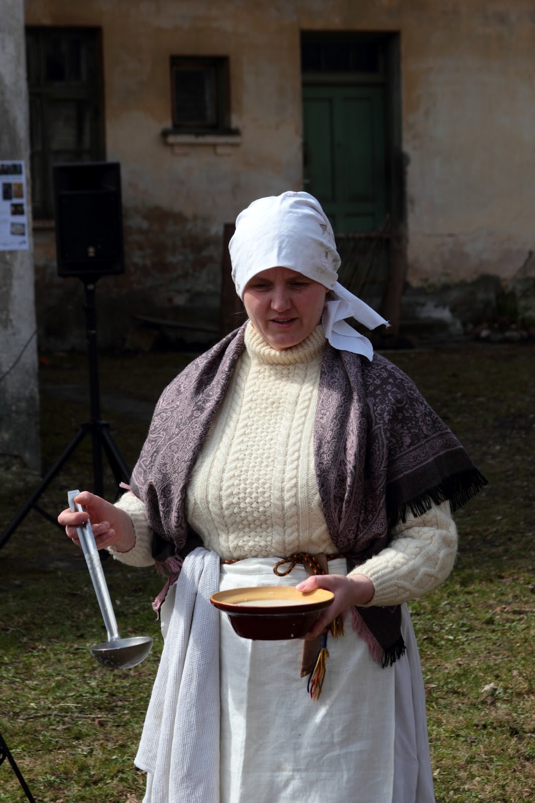 Museo Amatu māja de Ventspils, está en plena faena, nos va explicando todos los pasos para hacer la sopa y va aderezando la explicación con sus historias. Su modo de hablar me llama mucho la atención, y además, está ahí contando, tan natural, mientras revuelve la sopa, le añade un toque de sal, trae de acá para allá el pescado… Agata me comenta que habla un dialecto muy marcado, y me hace gracia ver que esa diferencia dialectal es un atractivo más a la hora de contar. Aquí en Kurzeme el dialecto está mucho más olvidado que en la región de Latgale, de donde procede Līga. La gente de Kurzeme sólo emplea el dialecto para bromear. Esto me hace pensar en el proyecto de narración Mercat de Veus (Mercado de Voces) que tenemos en las bibliotecas de Barcelona, en el que cada narrador narra en su variante regional de catalán para que los niños puedan disfrutar de la riqueza de su idioma; resulta interesante ver un fenómeno similar desde otra perspectiva.
