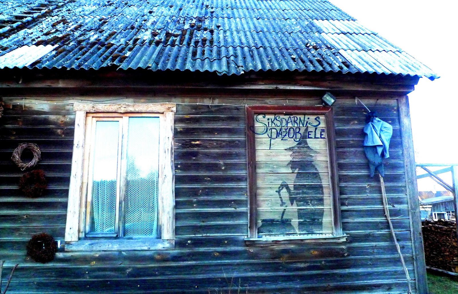 After saying goodbye to everyone, Guntis, Jaak, Ausma and I, we take the way to Tukums. Near this town, in a remote place, it is the house of Itiva, known as Pasaku Ragana, ‘The Fairytale Witch’. Ivita has created an original and wonderful place where people can come to listen to stories, children and adults as well. The walls are full of healing herbs, old books, puppets and any kind of charms and talismans. In one wall is written the different kind of stories you can choose, and the witch proposes little games made of wood and strings, and welcomes people in a beautiful room full of cushions, very comfortable. In such a place you feel in the mood of sitting down and listen to stories.