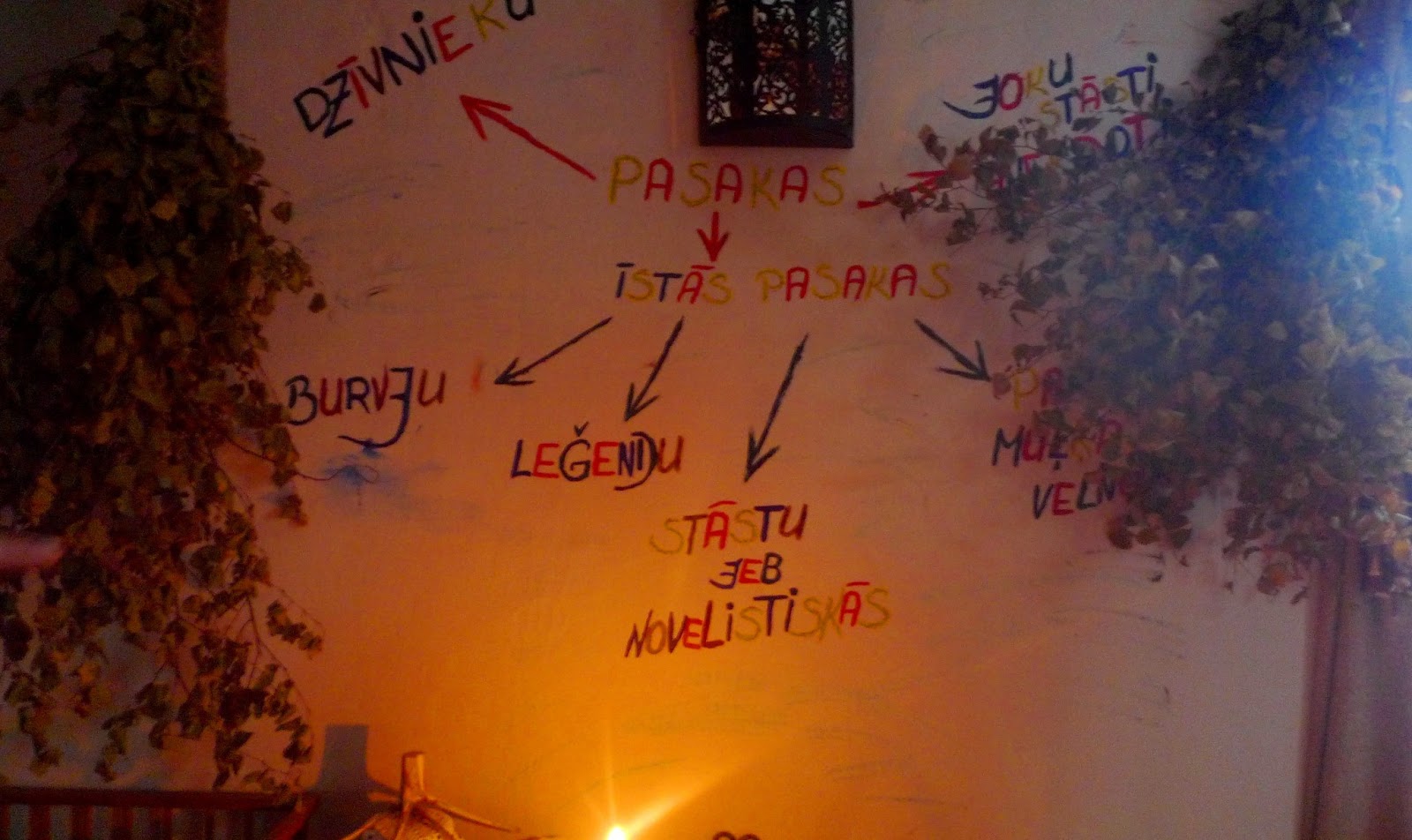 She is a good witch: at the entrance, after inviting us to smile at her mirror in order to leave evil spirits outside, she offers us a cup of tea. Her husband Kārlis helps with the translation from Latvian to English, and we begin a beautiful conversation. She talks me about her way of preparing people for hearing stories, her approach to folktales… She has developed a very creative way to work with children and I like the universe she has created in order to make easier people to enter in the world of wonder, something that is usually more difficult for adults than for kids. I am unable to sum up all the things we talked about, from the importance of creating a space that favours the act of listening, to the power and potential from folktales, our feelings about storytelling, the impossible task of classifying the unclassifiable that folklorists do… We talk and talk until dark, discovering that we share a common language: the language shared by the people who love stories. Ivita gives to everyone of us a talisman of juniper wood; it helps to discharge negative energy. «Keep it during a year, then burn it», she recommends.
