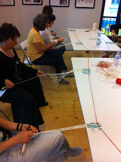 Además de debatir entre todos los 4 temas de las mesas redondas que se tratarán durante la Conferencia de Kea del mes de julio, durante las 3 jornadas del taller, todos los asistentes aprendimos grosso modo el arte de hacer redes y nos fuimos con alguna pieza hecha con nuestras propias manos. Compartimos cuentos, canciones y anécdotas, y todo esto se recopiló en un documento (en catalán), que se ha colgado en la web de ANIN, a disposición de todos los socios que quieran trabajar los cuentos dedicados al mar y a los pescadores.